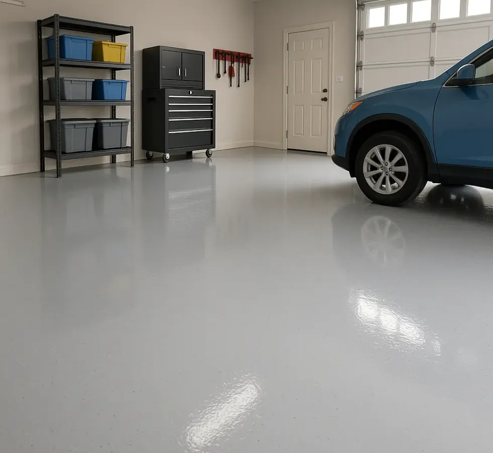 Epoxygulv i garage er meget slidstærkt og tåler daglig belastning fra biler, værktøj og tunge genstande. Gulvet er modstandsdygtigt over for ridser, væsker og kemikalier. Det gør epoxy til en ideel løsning i garager.